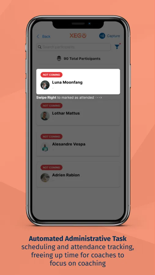 One of the key features of Xego Coach is its easy-to-use interface. With just a few taps, you can create an event and invite participants, making it easy to keep track of who's coming and who's not. You can also mark attendance for each participant with just a tap, eliminating the need for paper records or manual data entry.