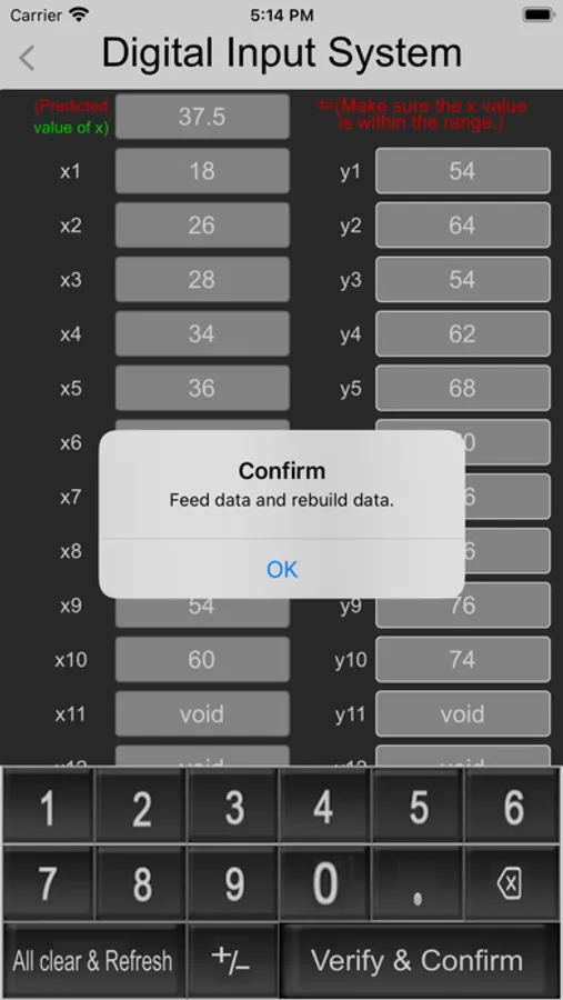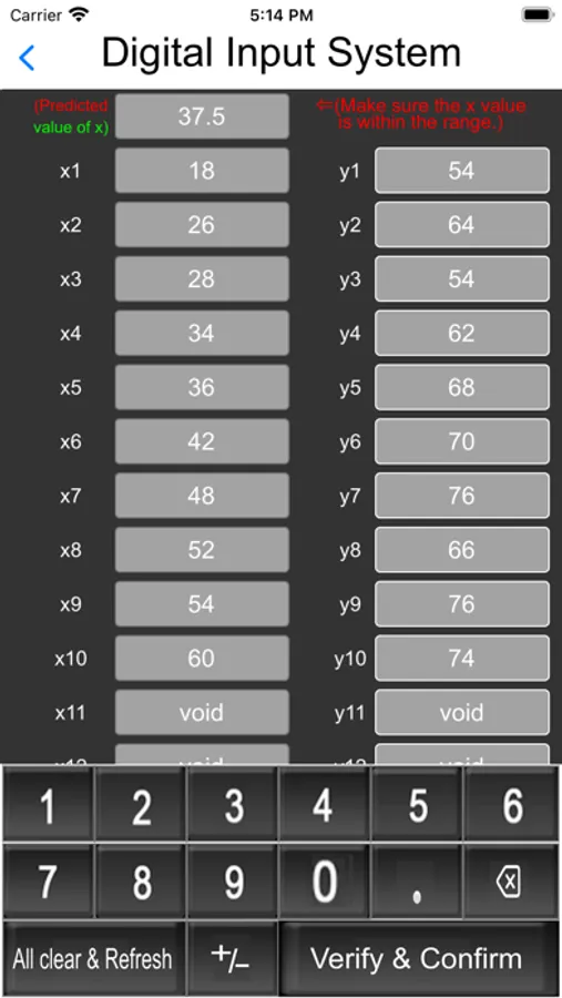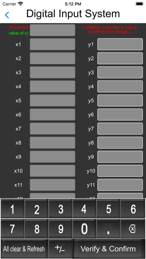 The linear regression equation with predicted value only for certain range of data. So, we need to stick the value of predicted value of x lies within the minimum and maximum values of array of x data.