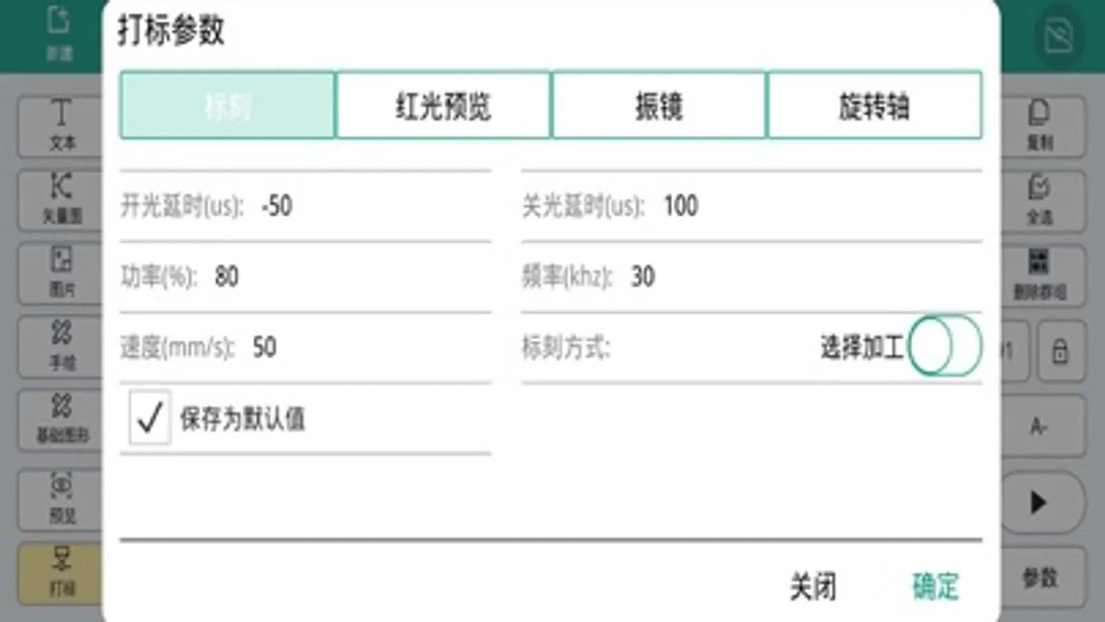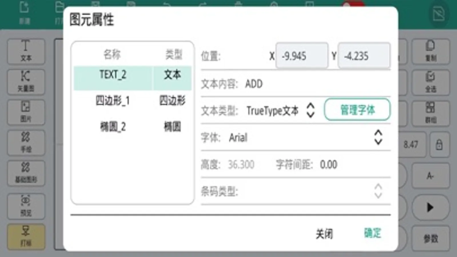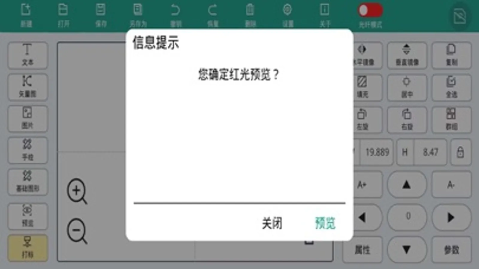 ADD Mark 支持文字,图形,矢量图,图片以及二维码的编辑,并且可对图形进行复制,移动,旋转,镜像,放大,缩小,填充等操作。用户也可快速编辑激光打标文档,通过WIFI传输到设备上进行打标。