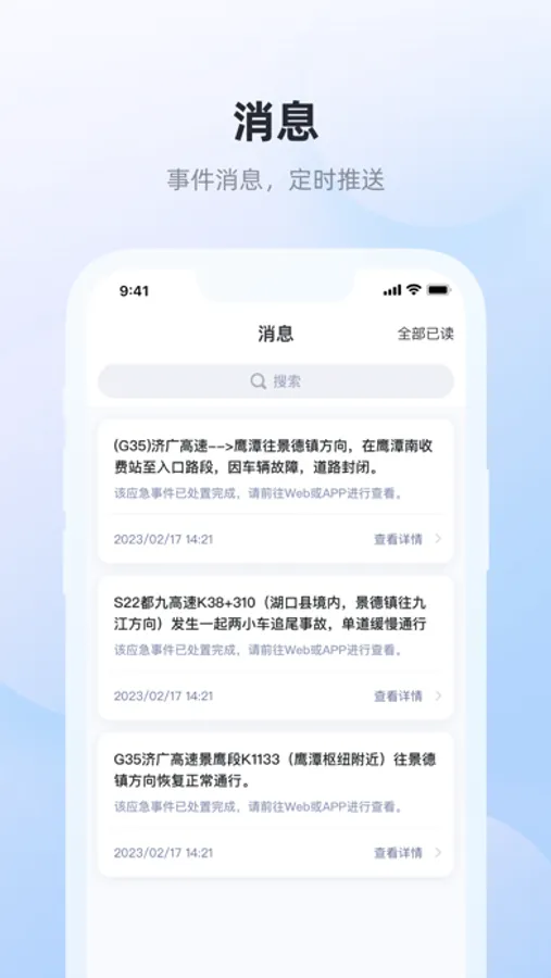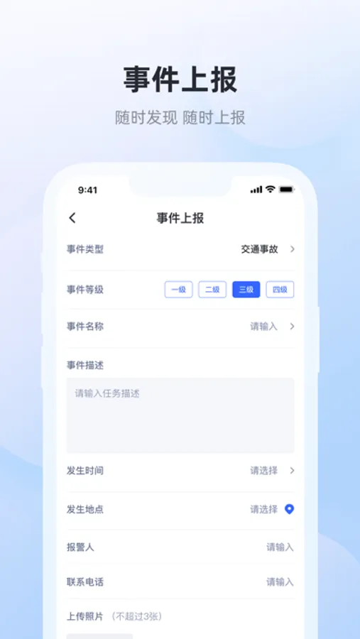 突发事件应急处置系统,实现事件随时发现、快速上报,事件消息的定时推送,并能实时掌握事件动态,续报事态发展等,做到全程可控、操作便捷,增强交通突发事件的应急处置能力,提高应急响应效率和应急指挥调度工作水平,降低突发事件对交通以及社会的影响。