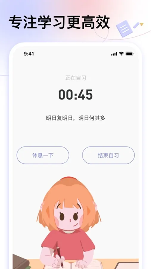 沉浸式陪伴学习,让你仿佛回到学生时代,在安静的自习室中,逐渐培养自主规划、合理安排学习时间、提高学习效率、自我管理的好习惯。