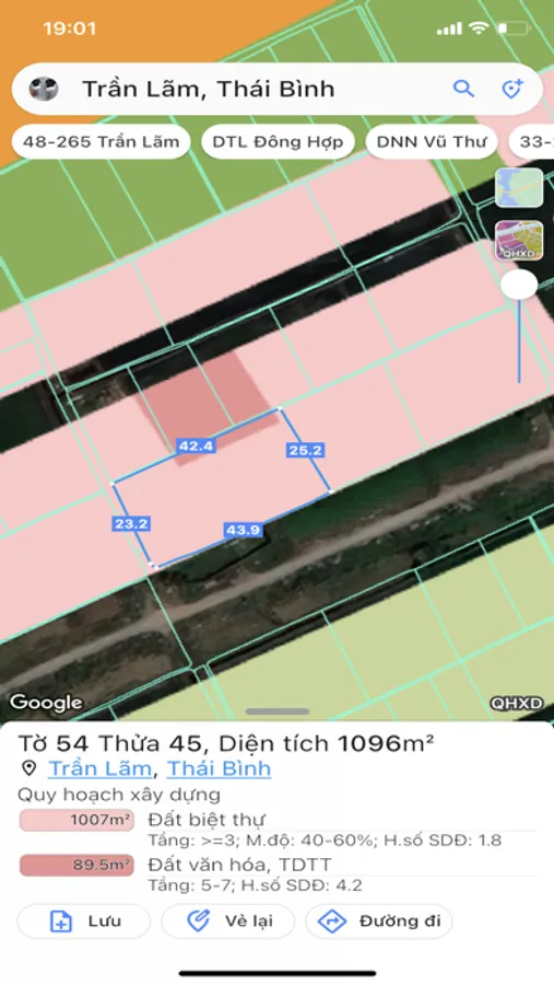1. Định vị vị trí thửa đất hiện tại của người dùng có vào diện quy hoạch hay không.