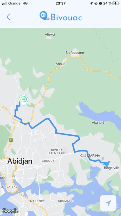 Découvrez BIVOUAC, notre application mobile innovante, conçue pour vous localiser aisément et vous offrir la possibilité de réserver facilement vos hôtels et résidences meublées préférées et à proximité, le tout depuis votre smartphone ! Effectuez des réservations à distance et payez immédiatement en toute simplicité via le mobile money, tandis que notre application vous guide instantanément vers votre destination grâce à son système d'itinéraire intégré.