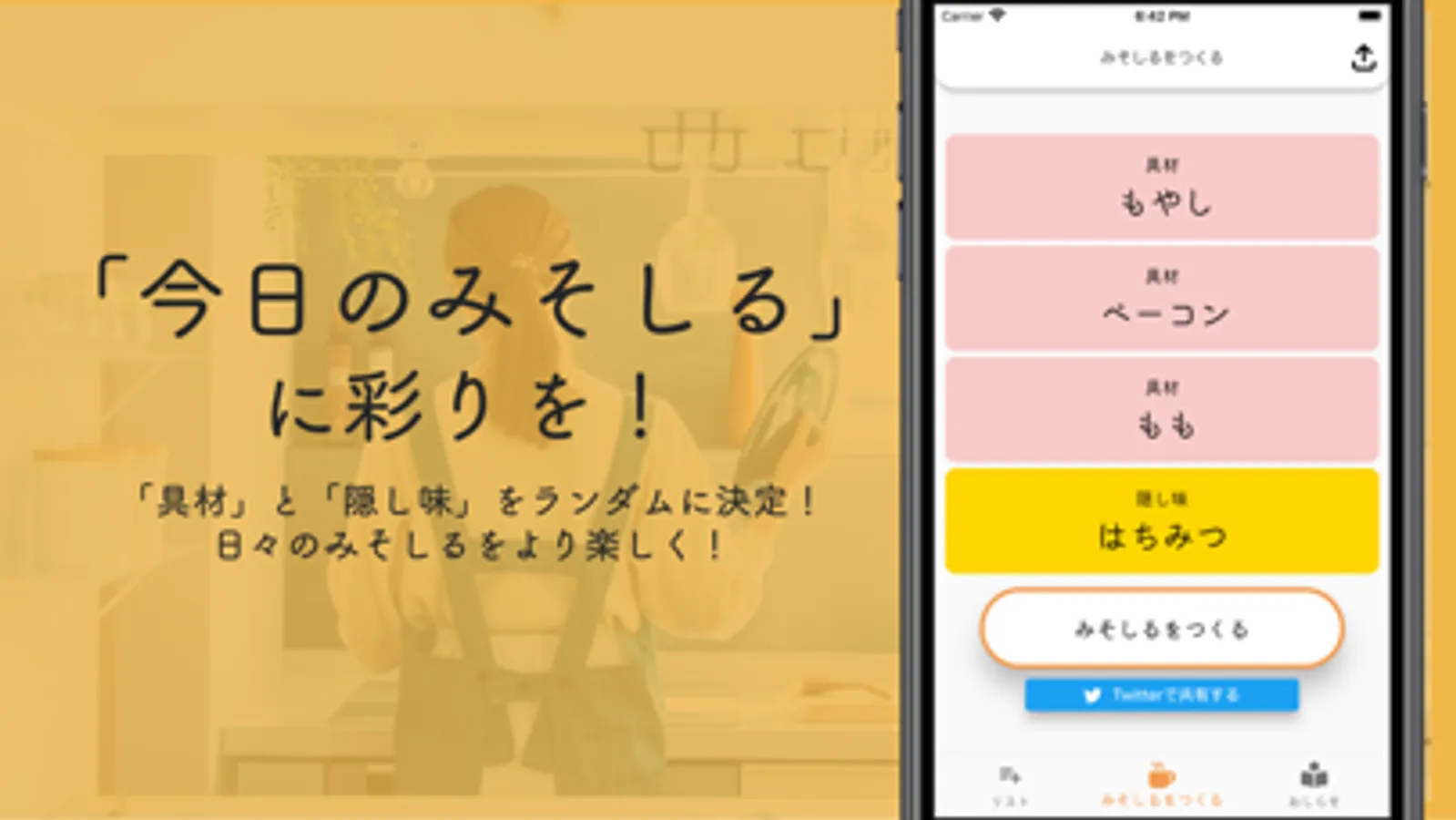 「今日のみそしる」の具材と隠し味を決めるアプリです。