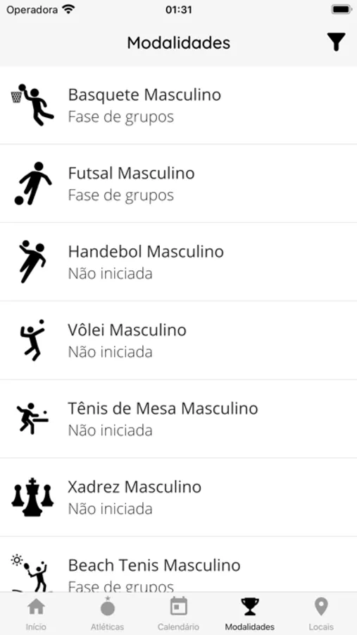 - Ver o calendário de jogos da competição, chaveamento das modalidades e classificações