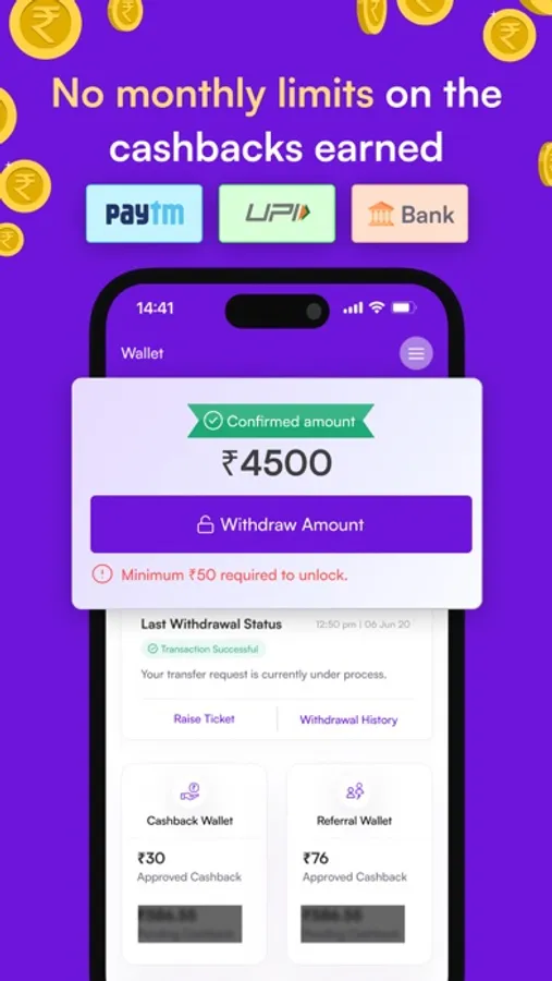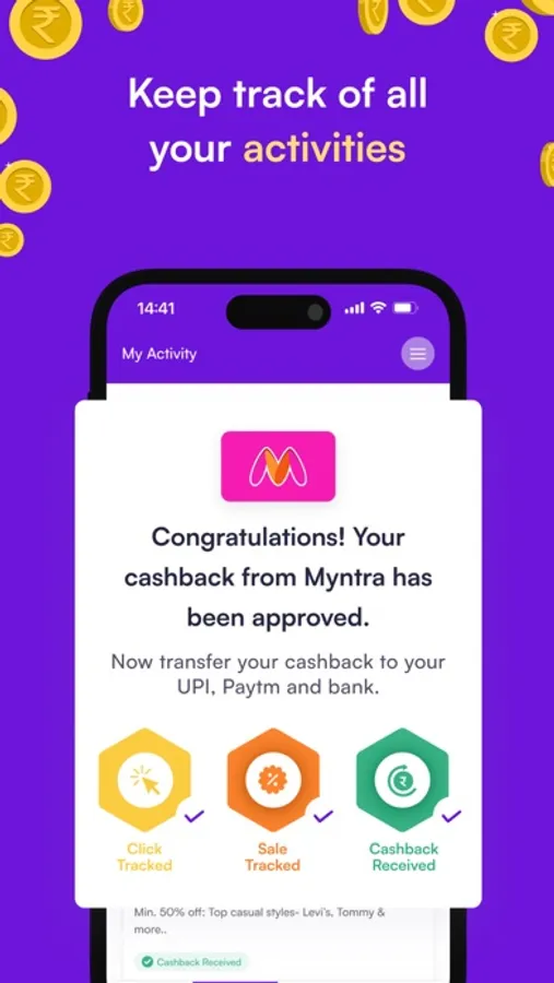 With this app on your mobile phone, you can earn real money on all your online shopping from over 150+ stores and easily transfer the amount to your Paytm Wallet, UPI, or any bank account directly.