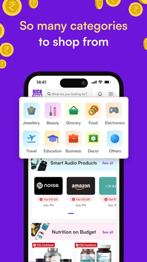 To earn real cash every time you need to shop via KickCash App. It brings you amazing offers on grocery, fashion, clothes, footwear, beauty products, online courses, jewelry and many more.