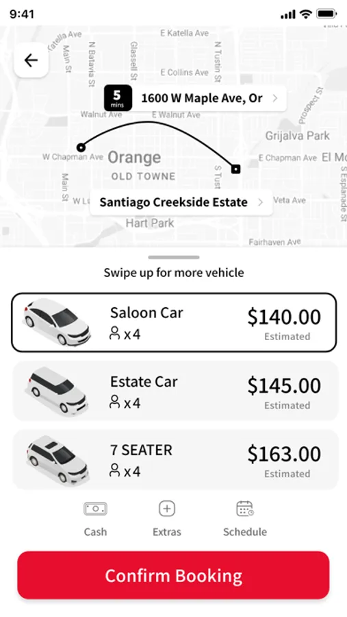 You can place the booking directly on our map, and see how many available cars there are nearby.