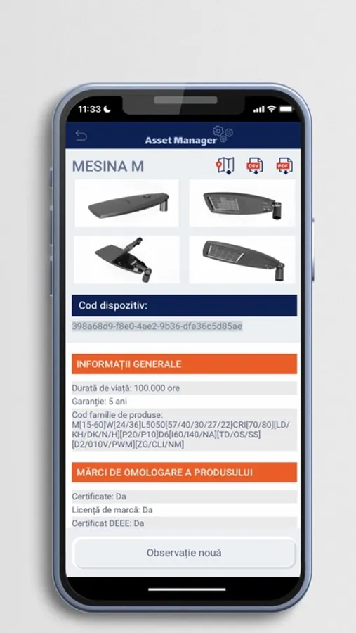 Aplicația Neos Asset Manager este un element important al ecosistemului complet de servicii Neos Smart City, care utilizează un sistem unic de identificare a modulelor Neos pe baza codului QR aflat pe acestea. Scopul aplicaței este de a furniza informații tehnice esențiale despre modulele Neos și aparatele de iluminat, cum ar fi: condițiile de funcționare, detalii mecanice și de montaj, precum și posibilitatea de a introduce observații suplimentare.