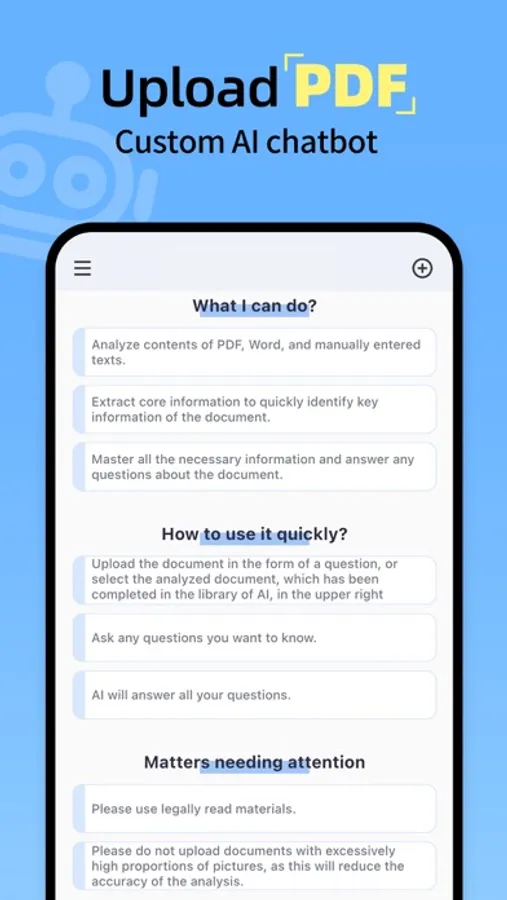 Use ChatPDF to customize personalized chat robots. Use your own documentation to create a customized intelligent chat robot that is knowledgeable about the literature you want to know and can answer any related questions.