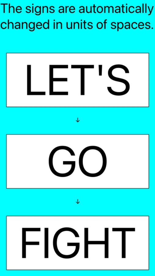 Enter some character strings that comes to mind on the spot, such as “LET’S GO BLUES” or “MAKE SOME NOISE”, and press the GO button to immediately display the messages separated by spaces.