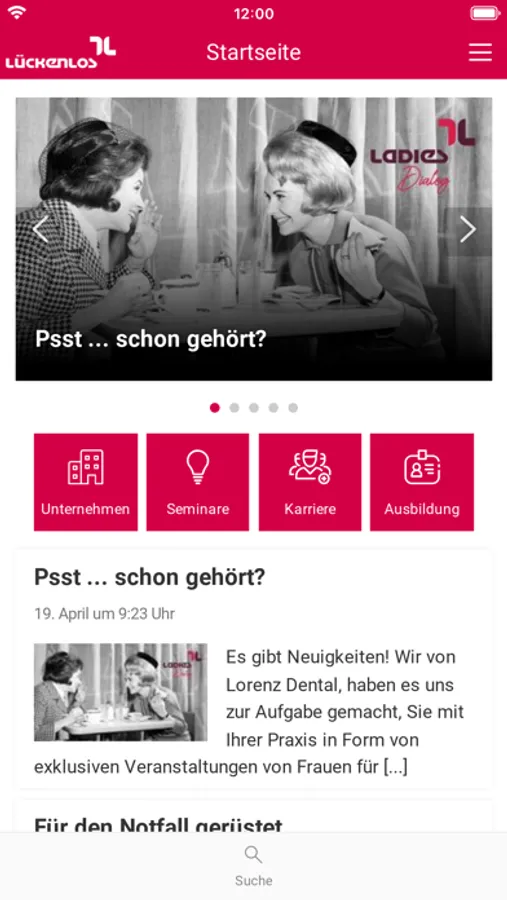Die Lückenlos App bietet unseren Kund*innen, Partner*innen und Mitarbeiter*innen aktuelle Informationen der Firma Lorenz Dental. Mit Benachrichtigungen sind Sie somit immer auf dem neuesten Stand.