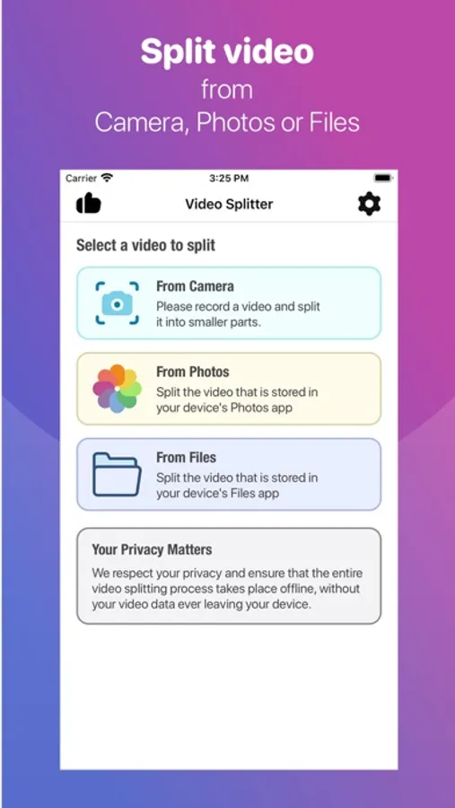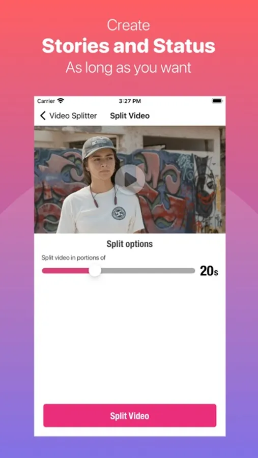 Cut your long videos into stories/statuses and share them on social media! Long Video Status for WhatsApp is specially designed for Whatsapp status, Instagram Stories, Facebook stories, and Snapchat Status.