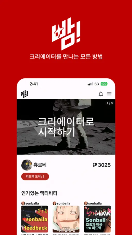- 액티비티 참여 기록과 피드백은 빰! 앱에서 언제든 다시 보실 수 있습니다.