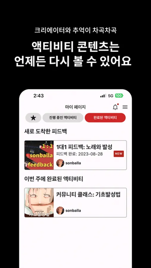 - 액티비티를 통해 쉽고 간단하게 크리에이터와 소통해 보세요.