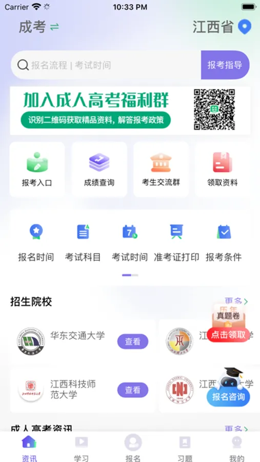 学历提升APP是一款移动在线直播学习平台,深耕在线职业教育领域10年,为考生提供全程考证学习辅导服务。覆盖成人高考、自考、教师资格证、建造、普通话测试、职业技能类、等多种学习科目,满足不同职业考证的学习需求。高达专成人高考、专升本成人高考全覆盖,全国30多个省市自治区,考试真题全新上线【在线课堂】手机可以随时随地学习,合理利用碎片化时间,不会错过每一次学习的机会语文、数学、英语、大学语文、政治、专业课考试全部科目真题;【通关资料】涵盖各科学习技巧、答题技巧、考点总结、重点题型汇总、万能答题模板,助力您一次通关【智能题库】涵盖各科历年真题,更有模拟试题、每日一练、考点章节练习、考点解析、快速诊断、高频考点等学习板块全面掌握考点学习的方法,让每一位考生都能顺利通过考试【在线报考资讯】最新成人高考、自考、教师考试相关信息,全面解读行业热点,干货笔记分享
