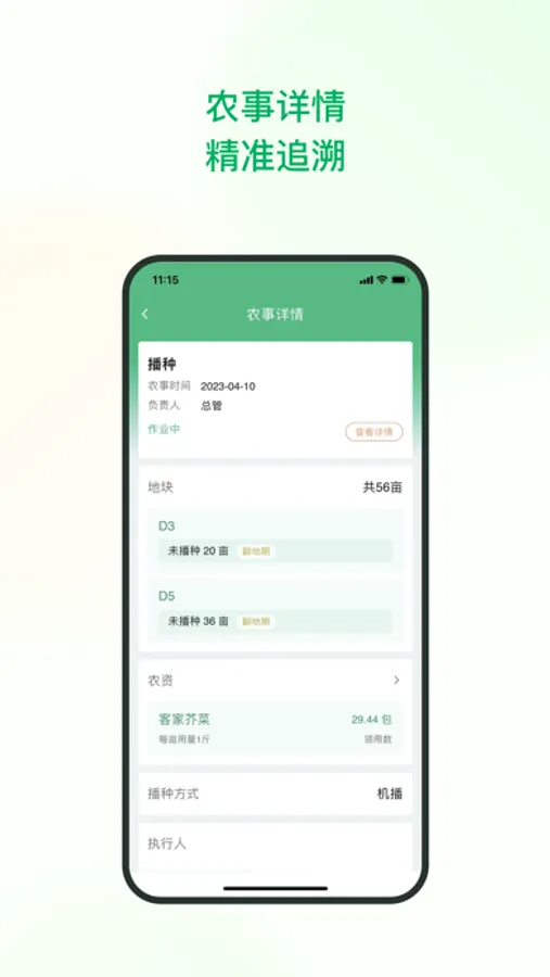 基地员工通过APP可以新增、查看农事流程相关数据,提高工作和管理效率。