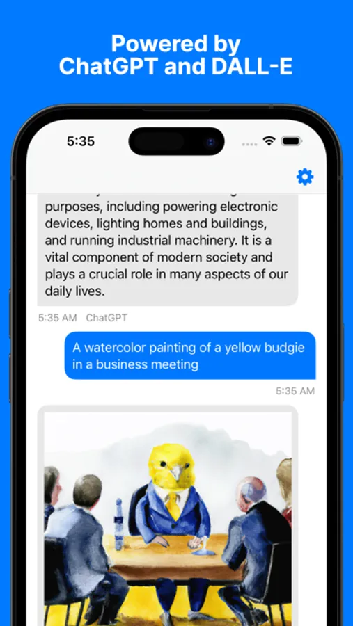 Welcome to AI Chat - Text & Image for iOS, powered by the world's most capable technologies in artificial intelligence. Our app provides you with an intelligent chatbot assistant that can help you with a variety of tasks, from answering your questions to generating images based on your inputs.