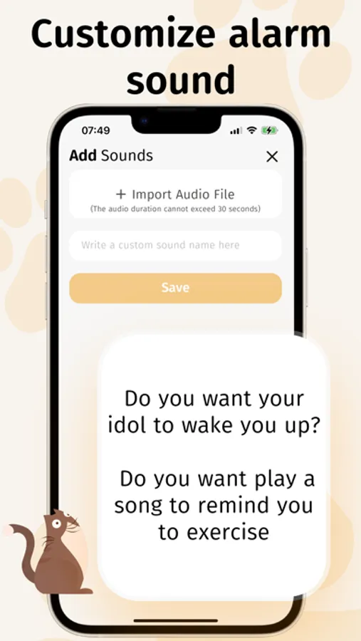 - Customize alarm sounds freely, any sound can be set as an alarm sound;