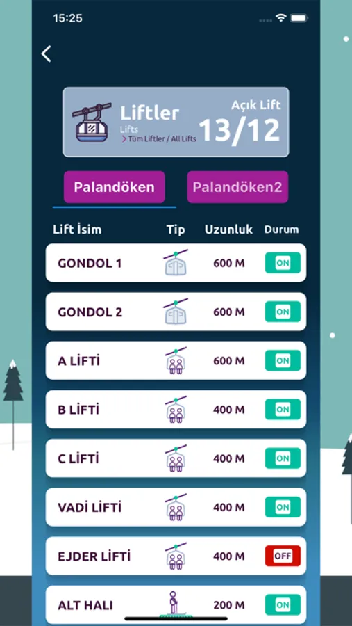 Palandöken ve Konaklı kayak merkezlerinin; Pist ve Lift durumları, Canlı kamera görüntüleri, 2d ve 3d pist haritaları, acil yardım, skipass ve kiralama fiyatları, otellerin tanıtımı, etkinliklerin paylaşıldığı bir uygulamadır. Bu uygulama Ejder Kayak Merkezleri A.Ş (Ejder3200) 'e ait bir uygulama olup tüm hakları saklıdır.