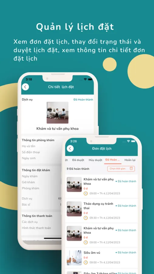 Lịch hẹn: Ứng dụng cho phép quản lý lịch hẹn của bệnh nhân, bao gồm đặt lịch, xác nhận, hủy bỏ và chuyển tiếp lịch hẹn.
