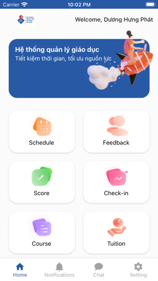Ứng dụng xem lịch học, kiểm tra điểm số, gửi phản hồi, hỗ trợ việc dạy và học tại trung tâm Anh Ngữ Âu Châu