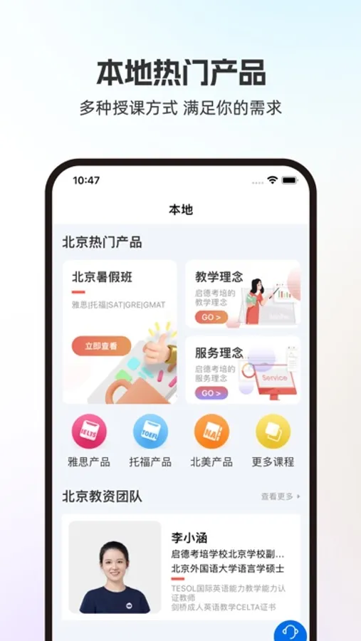 雅思、托福等多种热门课程,根据你的备考需求,可选多种授课方式,助力提升你的语言考试能力。