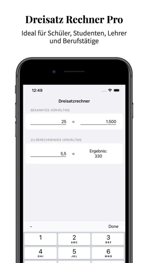 Introducing "Dreisatz Pro", die ultimative Dreisatzrechner-App für Ihr Smartphone! Haben Sie jemals eine schnelle und einfache Lösung für komplexe Verhältnisse gesucht? Dann ist Dreisatz Pro genau das Richtige für Sie! Diese App ist ein unverzichtbares Werkzeug für Schüler, Studenten, Lehrer und Berufstätige in allen Bereichen.