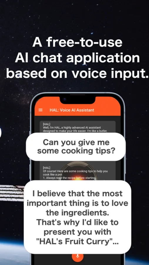 "HAL: Voice AI Assistant" is a free AI chat application that utilizes OpenAI's Chat API, allowing you to converse with an AI like those in sci-fi movies right on your smartphone.