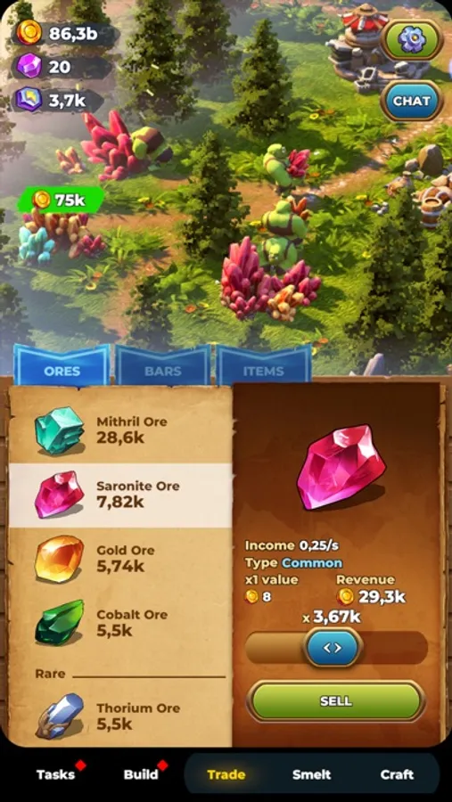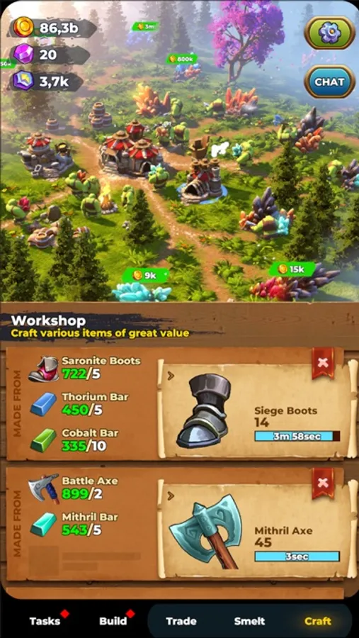 Dig for legendary ores, smelt them into bars and craft rare weapons, armor and artifacts!