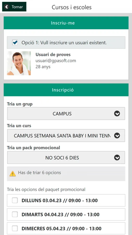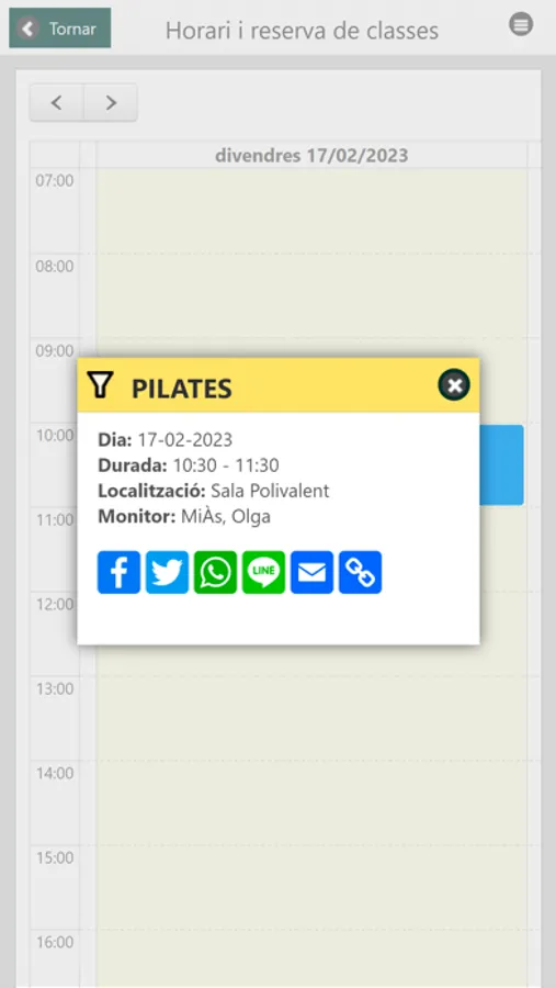 Pots veure el calendari, consultar les activitats, els horaris i els monitors.