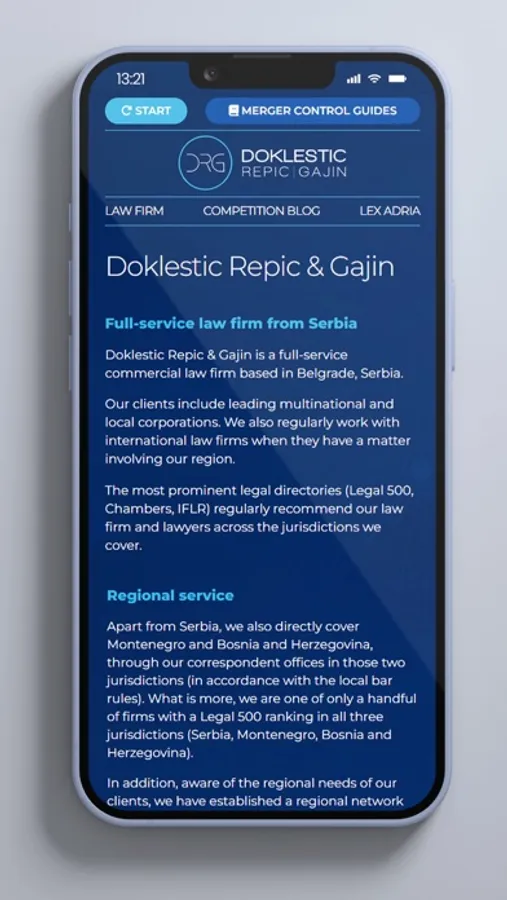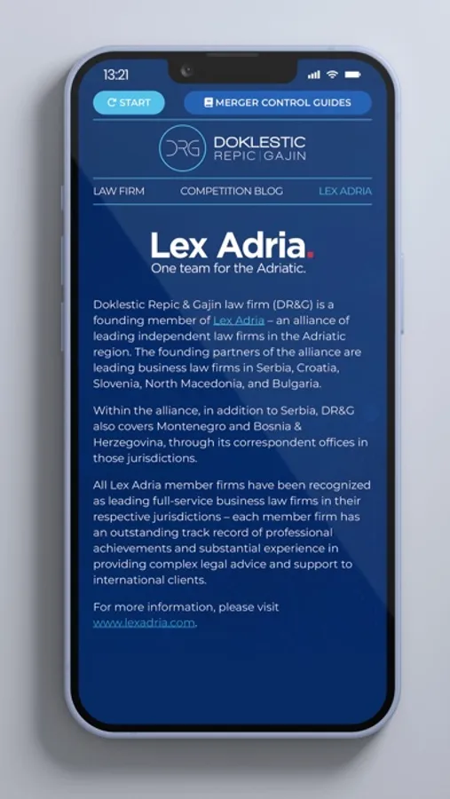 Check whether your transaction triggers a merger filing obligation in the Western Balkans - in just a few clicks. Covers Serbia, Montenegro, Bosnia and Herzegovina, North Macedonia, and Albania. Also includes a no-nonsense guide to merger control in each of these jurisdictions. This app, developed by Doklestic Repic & Gajin law firm, is a must-have for competition and M&A lawyers active in the Balkans.
