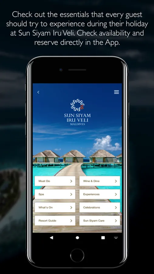 Explore Sun Siyam Iru Veli and its stunning facilities, plan your visit and activities from your device before and during your visit. Use this app to start planning your stay, and ensure you don’t miss-out on any of the incredible experiences on offer at Iru Veli Maldives. During your stay the app provides the perfect travel companion, showing what’s on, providing you with fantastic inspiration from the recommended Must do list of experiences which you can book directly from the app. Your itinerary is always accessible to see what adventures you have planned.