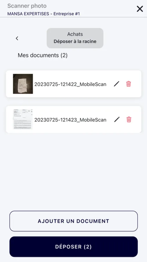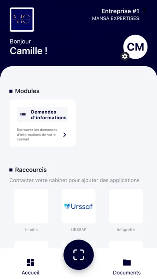 L'application MANSA EXPERTISES permet aux utilisateurs de scanner leurs documents depuis leur smartphone et de les envoyer directement sur la plateforme.