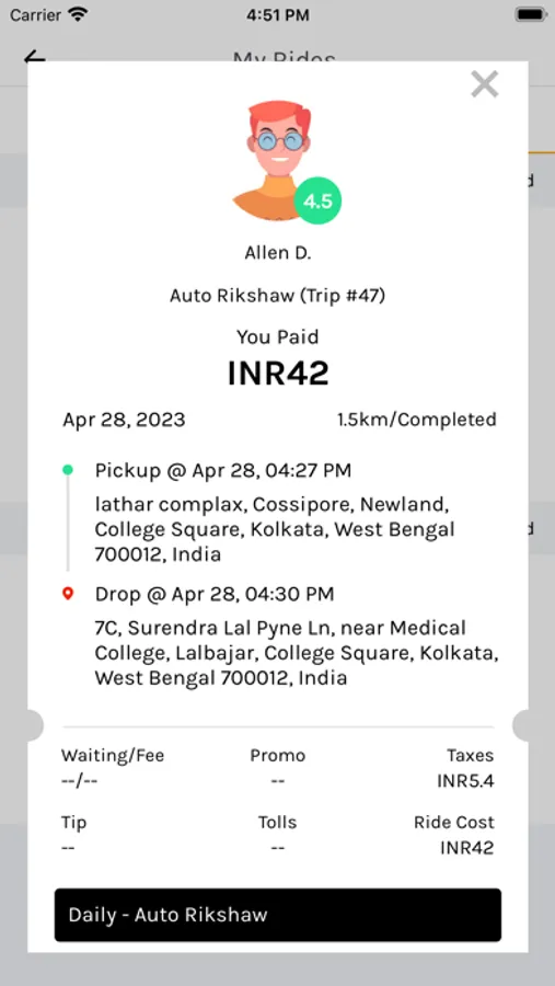 * To initiate an emergency alert that will be sent to your emergency contact during the journey, you can press the SOS button. The system will send your emergency contact an SMS with the location information.