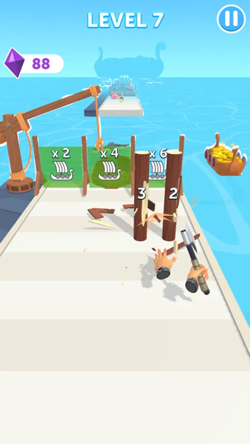 Cut the logs and BUILD your ship to BATTLE with enemies!!