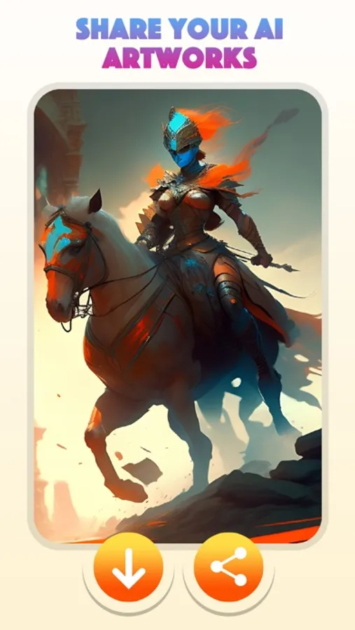 Share your ai arts with friends or on social media. You can share your arts or avatar directly from the app to other sharing platforms such as WhatsApp, Facebook, Instagram and more!