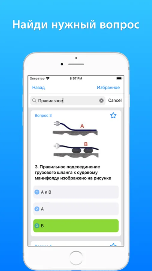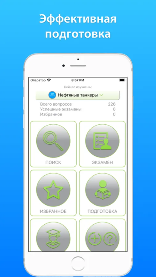 • Подготовка - Позволяет изучить вопросы в текстовом формате с отмеченными правильными ответами;