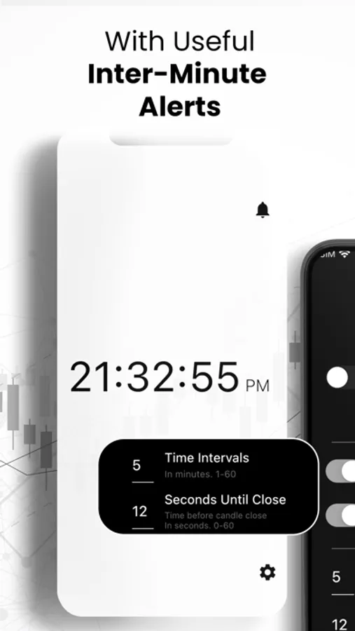 Our trade clock comes with the option to set time intervals within 60 minutes and to set and receive alerts seconds before the candle closes, so you never miss a trading opportunity and prevent emotions from getting over you in your trading.