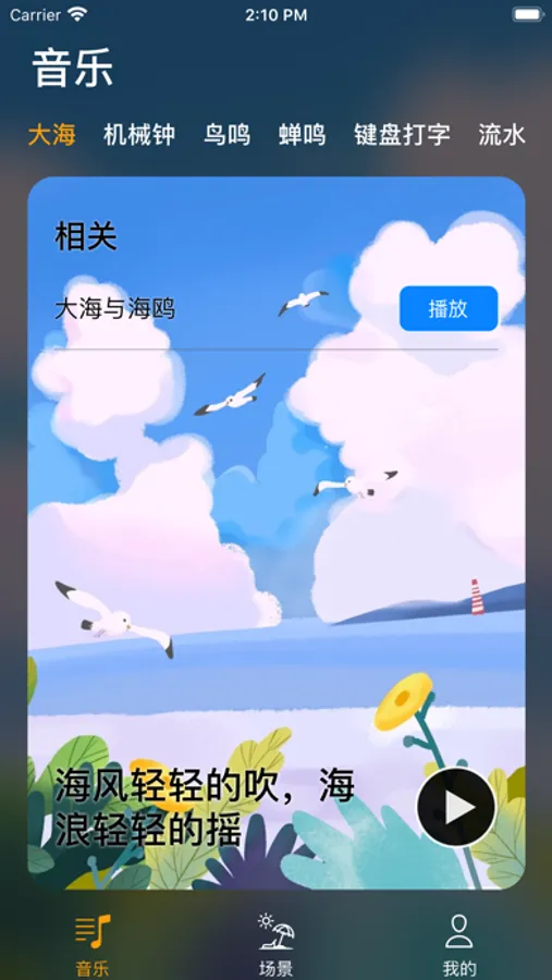 【融入场景】可以自定义自己喜欢的场景,融入合适的音符,有如身临其境之感。