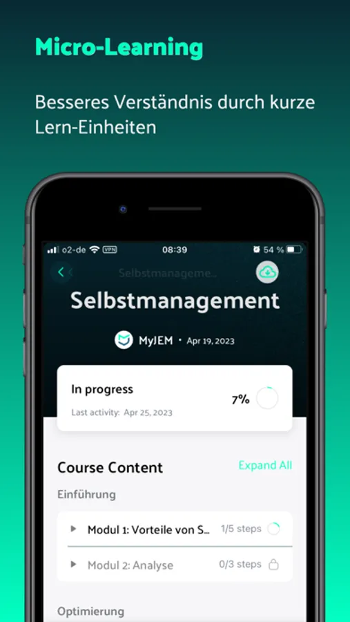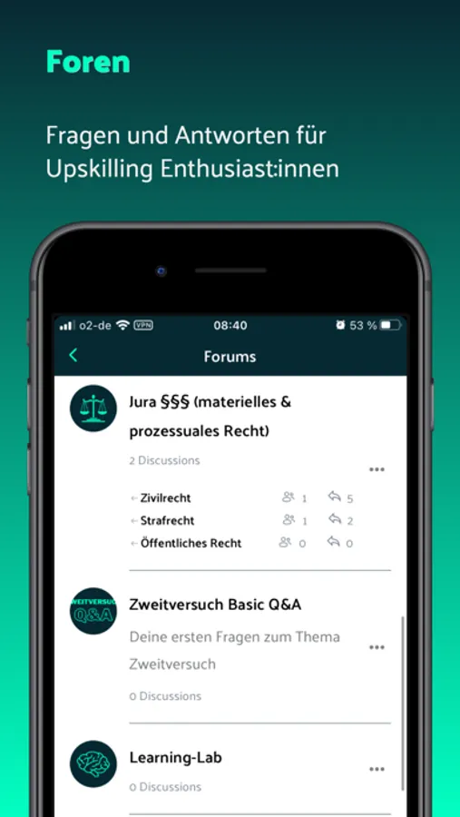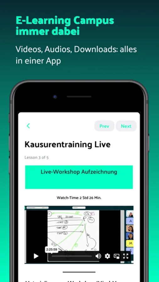 Alle Kurse, Videos, Audios, Downloads und die Community in einer App jederzeit und überall verfügbar.