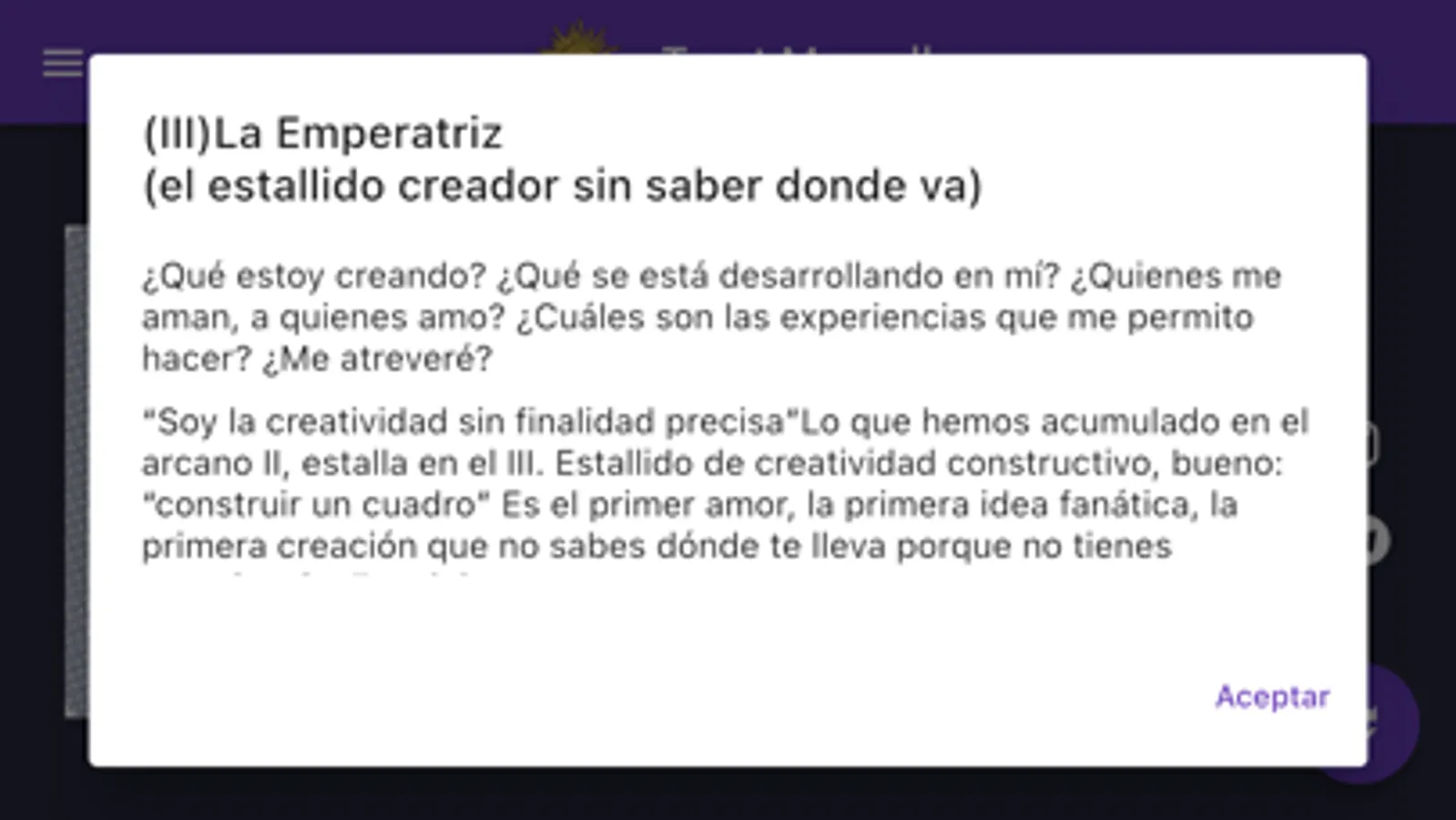 "Tarot Marsella" es una aplicación móvil única y fascinante diseñada para brindarte la experiencia de una lectura de tarot desde la comodidad de tu dispositivo móvil. Con esta app, podrás obtener respuestas a tus preguntas y reflexionar sobre diferentes aspectos de tu vida con tan solo unos toques en la pantalla.