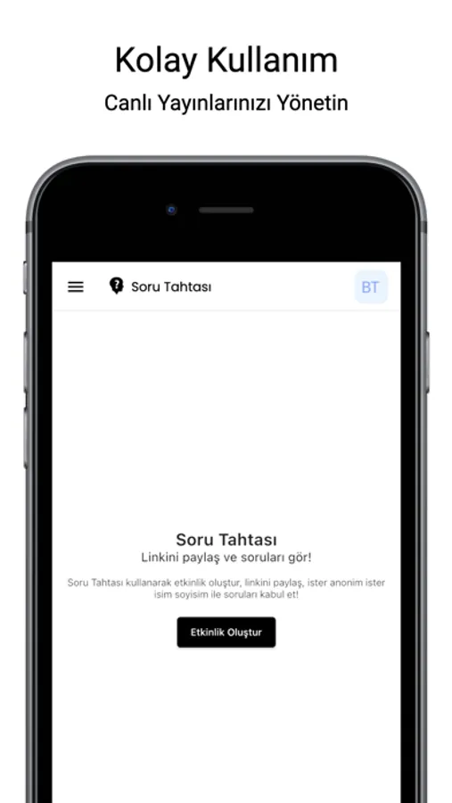 Soru Tahtası, ile ücretsiz olarak canlı yayın etkinlikleri oluşturabilir, canlı yayında soruları kolayca yönetebilirsiniz!