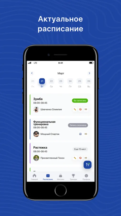 Посмотреть актуальное расписание групповых тренировок;