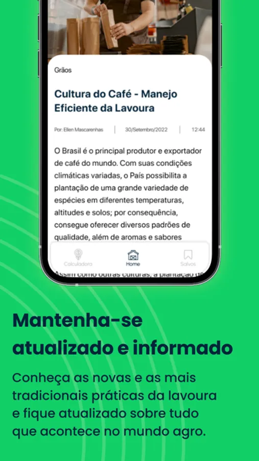Tudo isso gera um relatório para acompanhamento do agricultor com relação a valores também nesse relatório, esse é o principal do app. Dentro do app você também poderá ter acesso a materiais didáticos para acrescentar no conhecimento do agricultor.