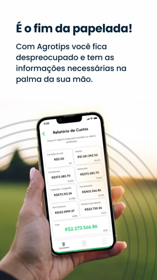 O aplicativo é utilizado para facilitar a gestão do plantio desse pessoal, que conta com uma calculadora, onde o agricultor irá lançar todas as informações necessárias, como a cultura que será plantada, relação de inseticida, bactericida, metragem do campo que será plantado.