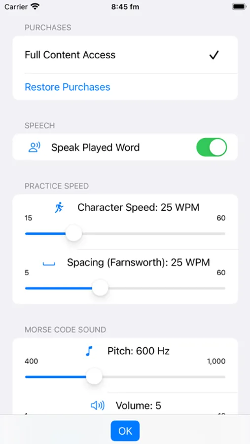 - 15 to 60 WPM speed with down to 5 WPM Farnsworth timing