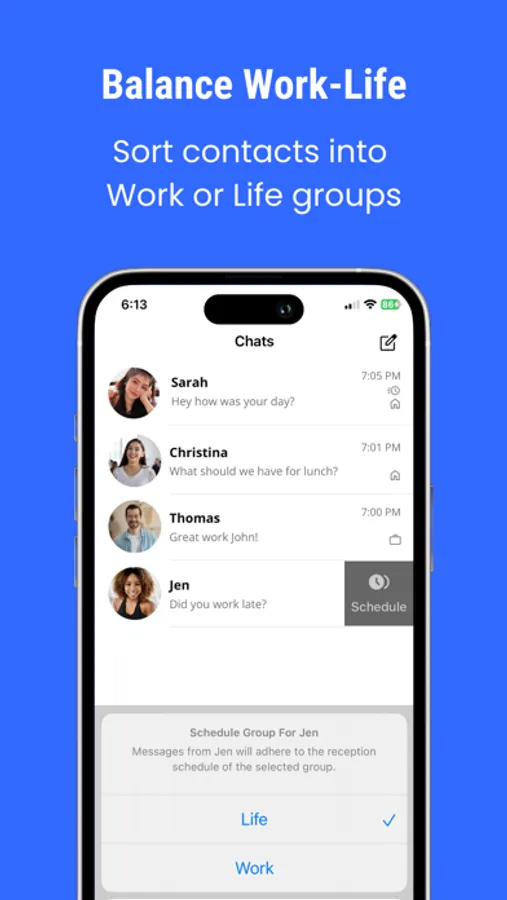 Discover balance with Tempo Messenger's unique Work and Life groups feature. Efficiently categorize your contacts based on their context, whether they're work-related or personal connections. Tailor your communication for different spheres of life, ensuring you stay productive and connected without any unnecessary distractions.