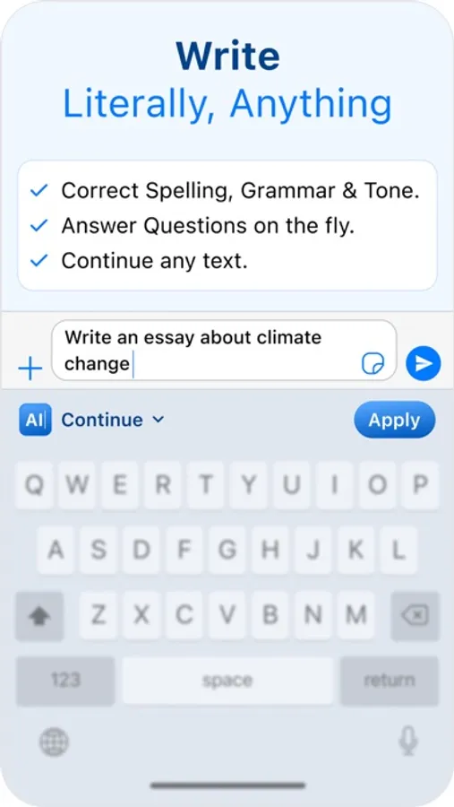 Whether you're writing a quick message, an important email, or just chatting with friends, Keyboard AI's got you covered. It's the AI generator that can: