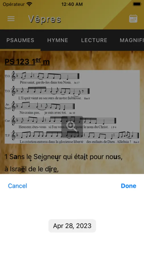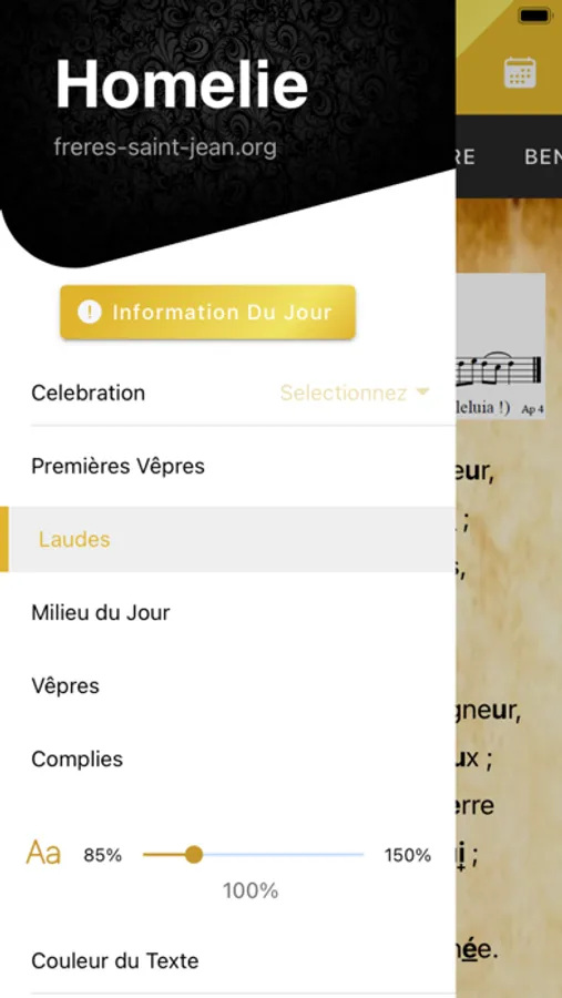 Cette application permet de prier ou encore célébrer les différents offices religieux de la journée avec le psautier de la Communauté Saint Jean.